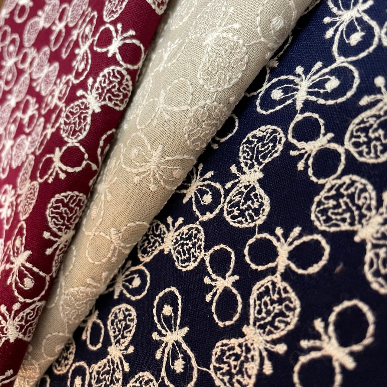 *コットンリネン 蝶々 【刺繍柄 3枚セット】